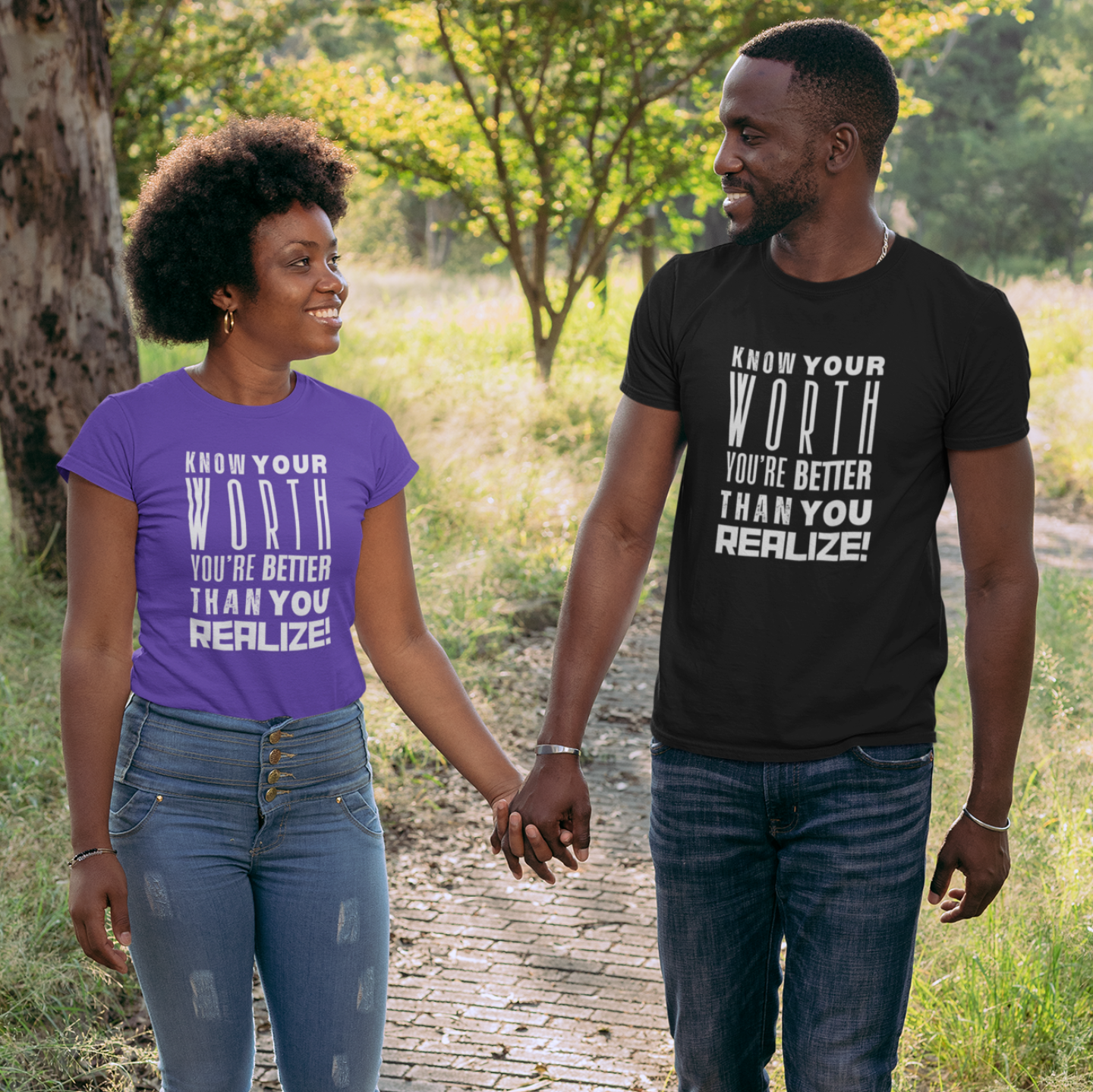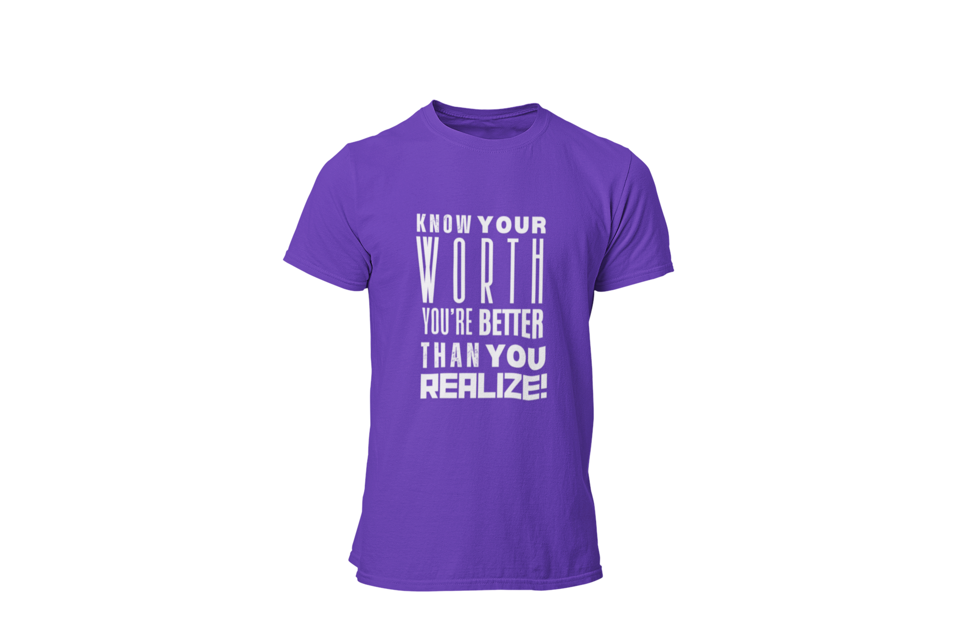 "Know Your Worth Your Better Than You Realize" reminds you to value yourself and never settle for less. This custom graphic design celebrates your strengths and encourages self-respect and confidence. Wear it as a daily affirmation of your true value.